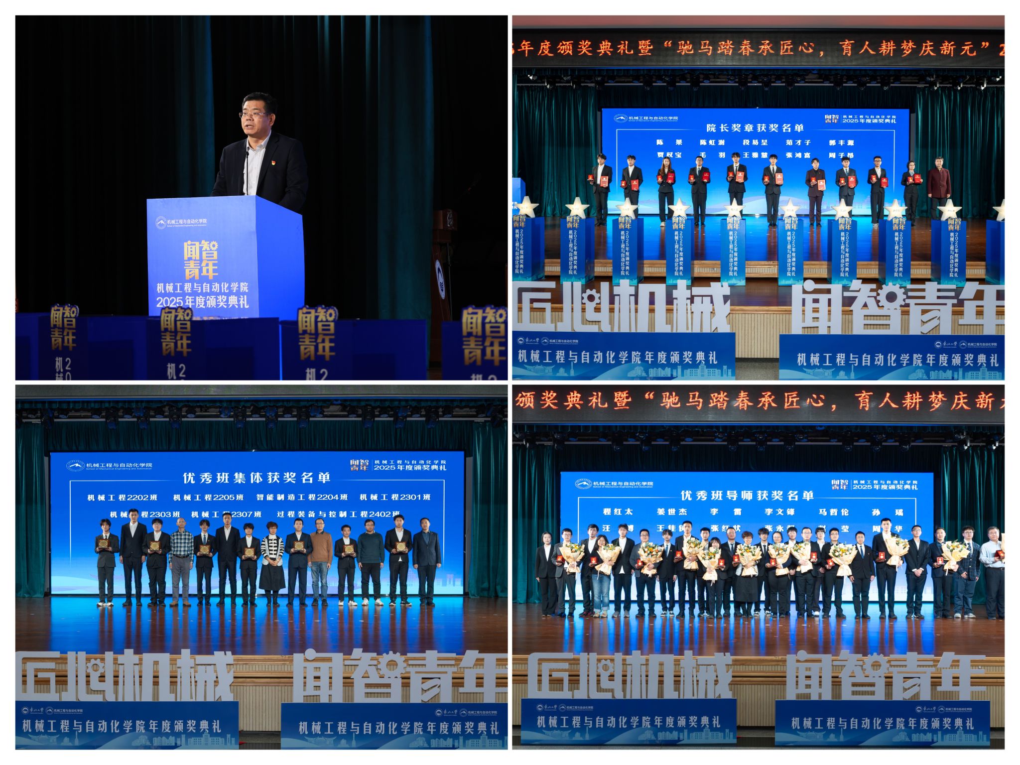 “院长章”获得者代表毛羽连系科研竞赛取意愿办事履历,讲述了“道阻且长,行则将至”的成长;“优良班集体”获代表豆煜轩分享了班级凝心聚力、共建优秀学风的活泼经验。正在“闻智匠心 共话青蓝”出格环节,优良班导师马哲伦取所带班级学生代表刘定佳同台交换,从分歧视角展示了师生间思惟引领、学业互帮、讲授相长的温情互动,彰显了育人一线的深挚交谊取结实成效。 12月19日晚,机械工程取从动化学院“闻智青年”2025年度颁仪式正在学糊口动核心多功能厅举行。学校相关部分担任人、学院带领班子出席勾当。副院长(兼)孙坤掌管。 副院长罗忠表扬决定。颁环节分三轮顺次进行。起首颁布的是“院长章”,刘云飞为毛羽等10名正在专业进修、科技立异、社会实践等方面表示杰出的学生颁布章。随后颁布“优良班集体”项,班导师代表为7个正在班风、学风及凝结力扶植中成效显著的班级颁。最初,仪式聚焦育人一线论理学生代表向获评“优良班导师”的教员们献上鲜花取荣誉证书,表达诚挚感谢感动。 学院党委郝建山正在致辞中系统回首了一年来学院取得的主要成绩。学院积极办事国度计谋,投身深度金属矿智能开采纳配备全国沉点尝试室扶植,并正在环节科研范畴实现标记性冲破,获得国度严沉专项支撑。同时,学院成功引进增材取激光制制范畴领军团队,稳步推进学校新增学位点扶植,为久远成长奠基根本。正在人才培育方面,学院学子表示凸起,正在“挑和杯”“中国国际大学生立异大赛”等多项赛事中斩获国度级项,结业生就业率持续连结高位,郝建山阐释了“闻智青年”品牌的育人内涵,勉励全体师生胸怀“国之大者”,将小我成长融入“制制强国”计谋,过硬本事,怯于立异创制,勤奋成为担任平易近族回复大任的时代新人。