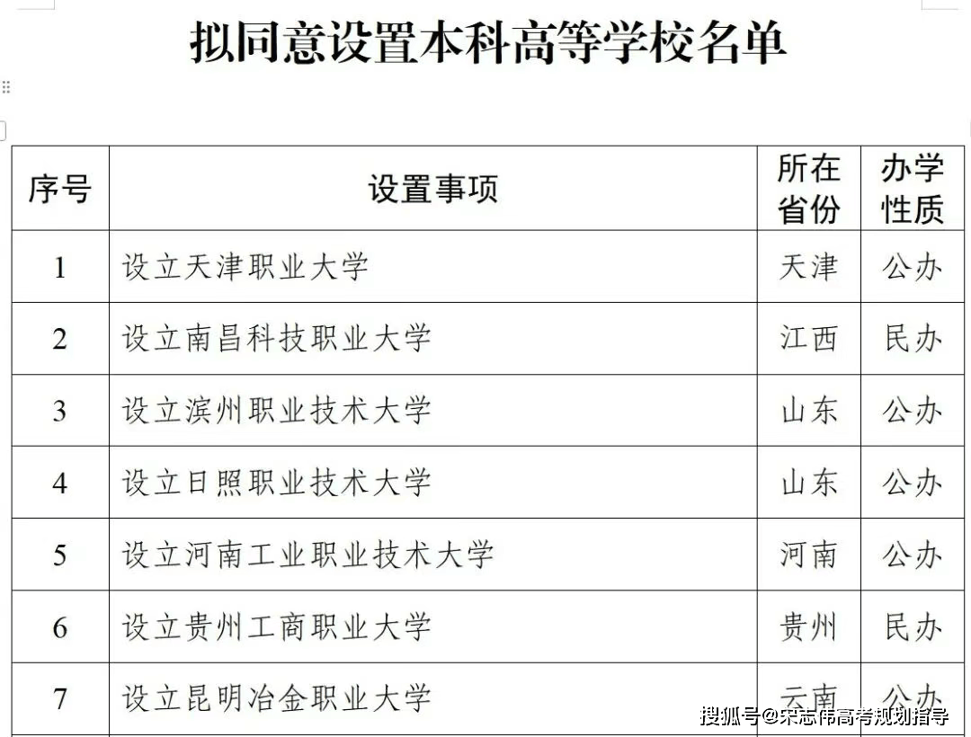 对于家长和考生来说,“新大学”的呈现,意味着报考的“新机缘”来了。 而正在近年择校时,“学手艺类专业+拿本科文凭”是这类院校吃喷鼻的缘由。 2026年1月4日,教育部发布公示:同意设置15所“新大学”,此中有7所是职业本科院校,一路来看看这7所“新大学”吧! 学校位于河南南阳市,前身是“河南工业职业手艺学院”(国度示范高职、国度“双高打算”高职、国度优良高职)。取其他院校不太一样的是:这所高校有明显的“军工血脉”。学校降生于1973年国度第五机械工业部开办的“五三一机械工业学校”,先后附属多个国度军工部委,为高端配备制制业培育了良多“精操做、懂军工、能立异”的复合型人才。此外,它牵头组建了河南国防科技工业职业教育集团(国度示范性职教集团),并取中国航天、比亚迪等龙头企业共建了航天配备制制财产学院、比亚迪财产学院等实体,深度的产教融合对学生能力培育和就业有很大的帮力。专业保举:机械设想取制制、数控手艺、机电一体化、工业机械人、电气从动化手艺、电子消息工程手艺、计较机使用手艺、建建工程手艺等。学校位于云南昆明市,前身是“昆明冶金高档专科学校” (国度示范高职、国度“双高打算”高职、国度优良高职)。它是一所扎根西南红土、手握冶金行业“武林秘笈”的顶尖院校。 学校行业血统纯正,降生于1952年国度沉工业扶植海潮,由地方沉工业部间接开办,血脉里刻着办事国度冶金矿业的基因。七十余年来,被誉为 “全国有色冶金高技强人才的金色摇篮”和“云南高职教育排头兵”。 王牌硬核:其有色冶金手艺和测绘工程手艺两大专业群,正在全国高职合作力排行榜中位列榜首。全国对折以上高职的有色金属相关专业招生人数,都依托于它的培育系统。 专业保举:电气从动化手艺、冶金手艺、建建工程手艺、工业机械人手艺、机械制制及从动化、数控手艺、机电一体化、使用电子手艺等。2026年1月4日,教育部发布公示,同意设立天津职业大学,这意味着天津的职教江湖要送来一位带着本科学位的“教员傅”。之所以叫它“教员傅”,是由于学校正在1978年建校,是全国高职“开山派”之一,校史比很多本科院校还长。国度示范高职院校、全国优良高职高专院校、国度“双高打算”高职院校……它是职教范畴的“全满贯选手”。不消担忧学校没有本科教育经验,正在专科阶段,学校就曾经开设7个结合培育本科专业,堆集了经验,所以该校2026年招生的新本科专业很值得等候。值得留意的是,这学校本来就叫“天津职业大学”,只不外是专科条理的,此次由专科成功升级“职业本科”,校名没变。早正在2025年7月,天津市教育委员会就曾发布公示申报“升本”,曲到2026年1月4日,教育部发布公示,同意设立这所新大学,专业保举:眼视光手艺、电气从动化手艺、使用电子手艺、包拆工程、汽车办事工程、汽车办事工程、机械制制取从动化、化学工程取工艺。2025年分数参考:正在天津,登科最低分为275分,正在广西,物理组最低分为410分,汗青组为423分。学校位于山东市,前身为“职业学院”,2001年归并“四校一所”(农业学校、卫生学校、工业学校、经济学校和市农科所),汇于农、工、医、经、研基因于一身,是首批国度校、全国优良校。配备制制、聪慧康养是值得家长和考生报考时出格关心的两个标的目的。结业生98%以上就业,超八成成为手艺或下层办理者。学校位于山东日照市,前身是“日照职业手艺学院”,于1998年建校,是 第一所公办高职。国度示范高职院校、全国优良高职高专院校、中国特色高程度高职30强……更四度摘取世界职教联盟(WFCP)杰出,它的荣誉墙可是填满的。水产养殖手艺专业群国度级程度,钢铁智能冶金手艺专业学的是高炉大数据优化,飞翔器数字化制制手艺专业为新兴劣势,学校结业生就业质量过硬,多量扎根日照精品钢铁、向海经济财产链,成为手艺中坚取办理。因为实力凸起,登科分数线持续多年霸榜山东同类院校前列,2025年正在山东通俗类专业投档最低分为382。专业保举:水产养殖手艺、食物加工手艺、机电一体化手艺、汽车检测取维修手艺、飞翔器数字化制制手艺等。学校位于江西南昌市,前身“江西泰豪动漫职业学院”由中国制制业500强泰豪公司开办,取多家企业、高校有合做关系,从降生起就带着明显的“财产基因”。该校最大的看点,就是专业结构紧扣前沿,打制“艺术+科技”跨界矩阵。 数字创意焦点:学校是全国首批开设虚拟现实专业的高职院校之一,环绕动漫、VR、逛戏、影视等建立焦点专业群,并设有奇特的国际动画学院。前沿手艺延长:通过华为ICT学院、智能科学取手艺系,将专业链延长至人工智能、大数据、云计较等前沿数字手艺范畴,培育“懂艺术的工程师”和“懂手艺的艺术家”。“红专融合”特色:学校创制性将江西丰硕的红色文化资本取专业讲授连系,通过VR红色讲授软件开辟、红色影片修复等实践项目,实现“红色基因传承取专业培育一体化”。 专业保举:计较机使用手艺(ICT标的目的)、影视动画、动漫制做、逛戏艺术设想、音像手艺等。学校位于贵州贵阳(清镇市),前身是“贵州工商职业学院”。学校2012年由企业投资开办,精准抓住了贵州大数据、大健康等新兴财产兴起的春风。短短十余年,已成长为万人规模、具有6个二级学院和25个