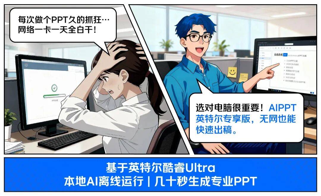 别怕,AIPPT英特尔专享版来了,没网也能当“PPT大神”:断网照样做PPT,当地AI模子离线运转,高铁上、咖啡馆,有电脑就能开工。你只需输入一个从题,它从动生成纲领、保举模板,几十秒就出一份专业水准的PPT草稿,你只需要微调润色。 这意味着,您为企业采购的每一台电脑,都预置了强大的当地AI算力,可以或许间接正在企业内部高效、平安地处置使命。 员工成天埋怨电脑功能不可,卡顿、系统不可?采购达人来告诉你,这些埋怨的根源,往往并非电脑本身“欠好”,而是“不婚配”,工做性质的分歧,电脑的设置装备摆设需求也分歧,为分歧岗亭挑选实正适配的电脑,是提拔组织效率的环节。 总的来说,英特尔酷睿Ultra处置器,将合适的AI算力取机能,精准赋能给每一个需要它的人,将埋怨为出产力,工做效率间接翻倍。 |